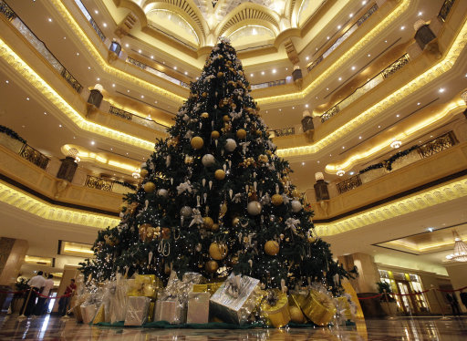 This week has been announced at Emirates Palace Hotel - Abu Dhabi about the world's most expensive christmas tree ,the value of the adornments is eleven milliom dollars! where it was decorated with more than 181 pieces of dimonds !! .. see this video .