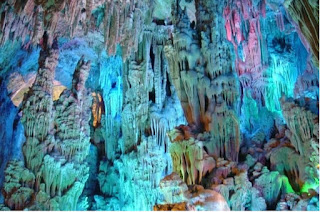 1. Reed Flute Cave In China : it regarded as one of the most beautiful caves of the world ,it is divided into several major sections ,inside it there is fantastic landscapes with different colors all are natural , the cave currently is the most important tourist destinations in the world ..