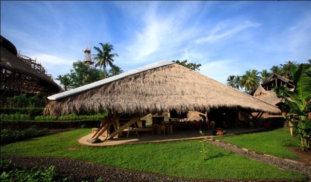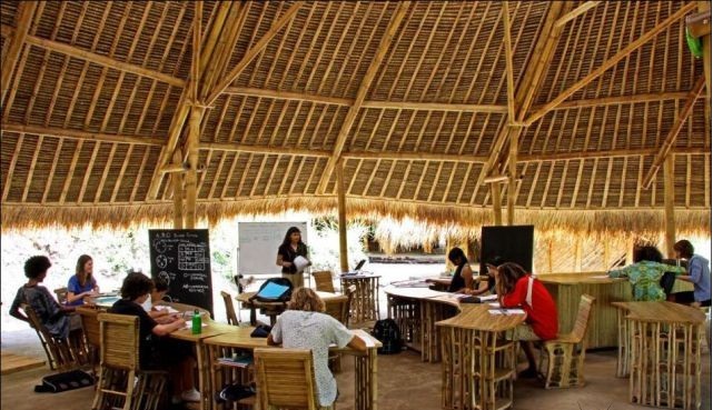 The school called " green school " and this name didn't come from vacuum ,this school is Eco-friendly ,where it was built from grass and mud , cement wasn't used expect in simple parts of the foundations ,it is located in the island of Bali - Indonesia ,in this amazing school the children learn about the environment and of course there are offices,classrooms and cafe ,about the electricity is supplied from source of environment-friendly is a solar-powered generator!! i hope you like this collection of photo ..
